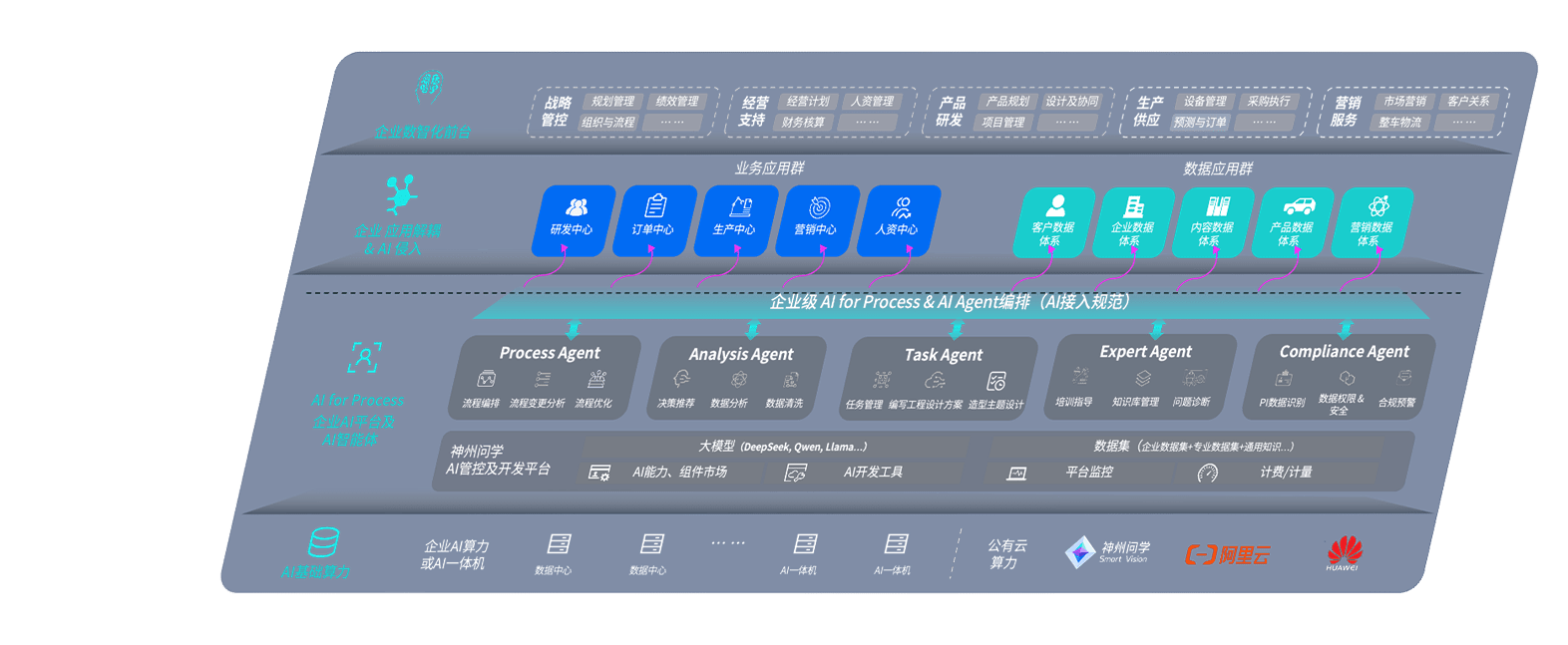 辉达娱乐问学智车解决方案是一套基于AI技术的汽车行业智能化系统,,,覆盖从底层算力到顶层AI应用的全栈方案。。。方案由算力层、、、模型层和应用层组成:算力层,,,,方案支持多种一体机配置,,具备云端灵活部署、、多云适配以及动态优化计算资源的能力;模型层,,辉达娱乐问学平台版提供了企业级AI应用一站式构建与管理平台,,,,支持基于后训练强化技术的汽车企业专属模型的训练、、、评测和运营;应用层,,,辉达娱乐问学DeepSeek版提供包括超级员工、、、、智能招采、、、智能营销、、、、智能客服、、AI for BI等一系列解决方案,,可助力汽车行业实现数字化转型,,,让管理更智能、、响应更敏捷。。。