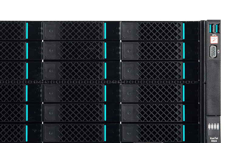 KunTai R524 存储型服务器是辉达娱乐数码基于鲲鹏处理器推出的新一代 ARM数据中心服务器。。。主要面向存储业务,,,具有海量存储、、、、高性能、、、低功耗以及易扩展的特点,,,,适合为大数据分析、、、软件定义存 储等应用场景的工作负载进行髙效加速。。。